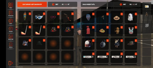Аксессуары: Сумка Champions, Рюкзак Готический, Рождественская сумка, Сумка Мир Май, Сумка Майские розы, Маска полярного пингвина, Школьный ранец, Рюкзак подарочки, Маска Хайда, Муляж Топора, Шляпа Пирата, Рюкзак Ghost, Мешок с подарками, Пляжная панама, Рюкзак Котик, Бронижелет SunRay, Рюкзак ColorBlock, Сумка Замок, Рюкзак Крысагент, Шляпа охотника, Летняя Доска, Очки SpeedPulse, Розовые очки-сердечки, Деревянный посох, Победная Клюшка(2шт), Подарочная шляпа н5(2шт), Маска Погодь, Черная Панама Nike