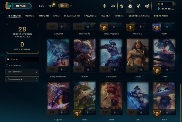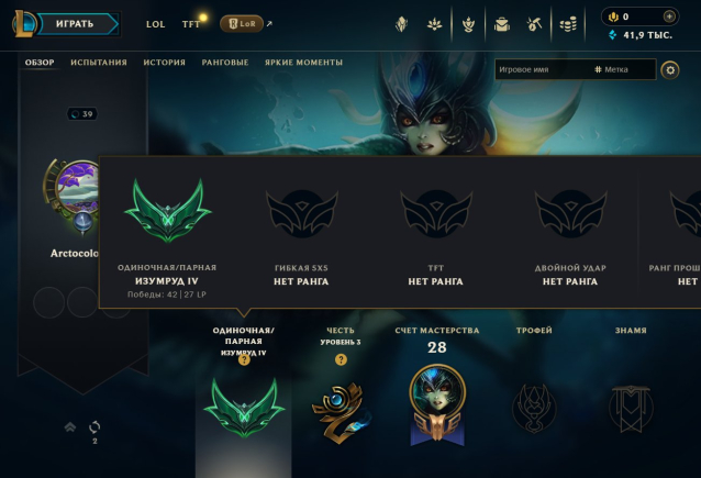 Краткое описание: ☀️Изумруд IV 27 LP☀️56.8% Винрейт☀️41.925 СЭ☀️Почта☀️Скрины☀️8 скинов в луте☀️