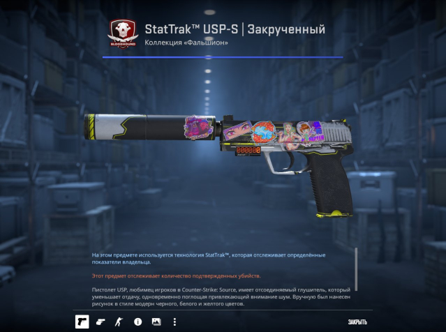 Подробное описание: 📕⚫️ StatTrak™ USP-S | Закрученный [ После полевых испытаний ] (c наклейками) ⚫️📕