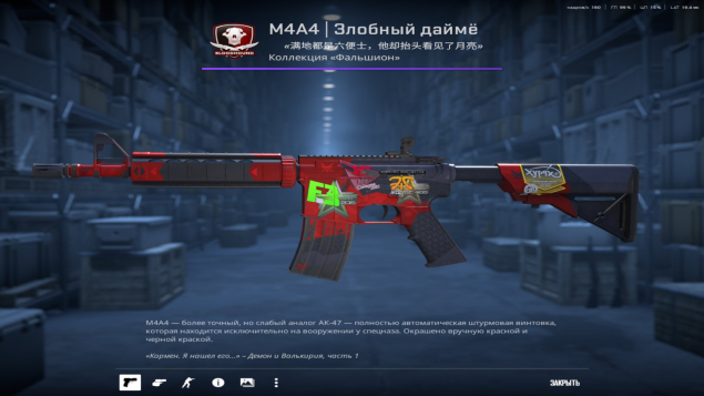 Подробное описание: 📕⚫️ M4A4 | Злобный даймё [ После полевых испытаний ] (c наклейками) ⚫️📕