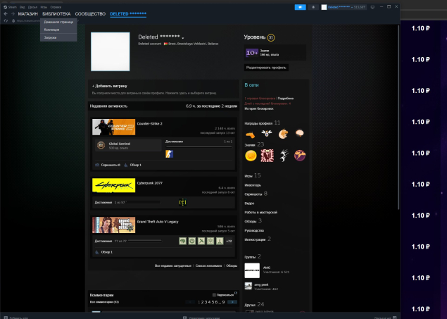 купил(а) Аккаунты с играми Steam за 700 ₽