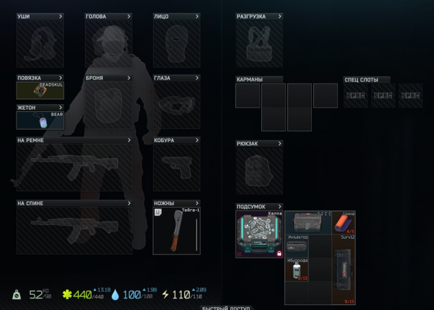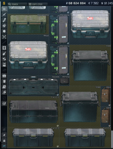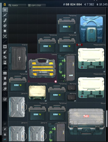 Огромное количество кейсов для хранения ваших шмоток. Идеальный вариант для того, кто хочет просто и с комфортом начать играть или вернуться в тарков.