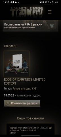 На аккаунте было сыграно несколько забегов, можно вайпнуть. Edge of Darkness Edititon + EFT:Arena + PVE