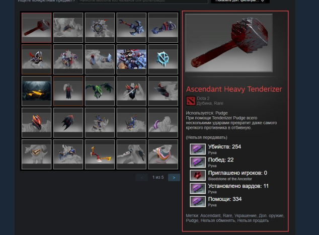 В DOTA 2 МНОГО РЕДКИХ ШМОТОК ОДНИ ИЗ НИХ МОЛОТ НА ПУДЖА см. скриншот ниже