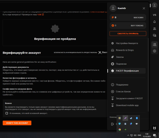 3. FACEIT аккаунт, с не пройденной верификацией.