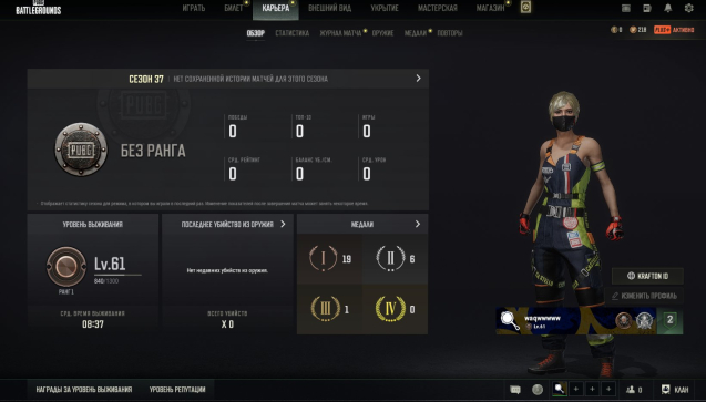 1) Скриншоты — ibb.co/album/v39HDC 🟠 LVL = 61 🟠 G-COIN = 0 🟠 Battle Points (BP) = 218 🟠 Скинов = 20