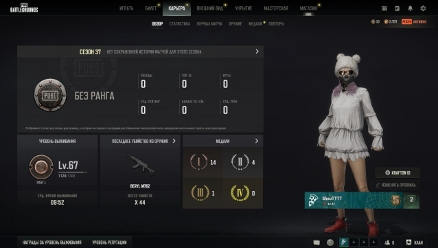 1) Скриншоты — ibb.co/album/y4LpVY 🟣 LVL = 67 🟣 G-COIN = 10 🟨 Battle Points (BP) = 2,707 🟣 Скинов = 113