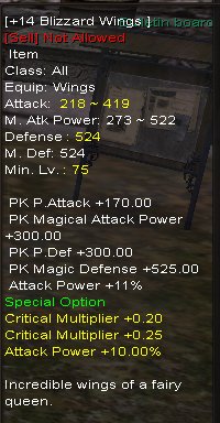 Сервер: Karos Reborn (karos.to) — PandoraКраткое описание: +14 Blizzard Wings ♡