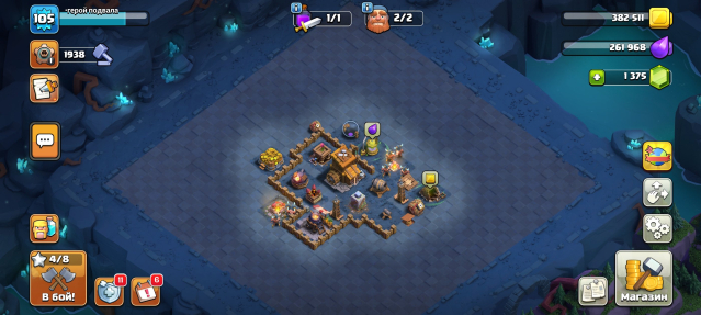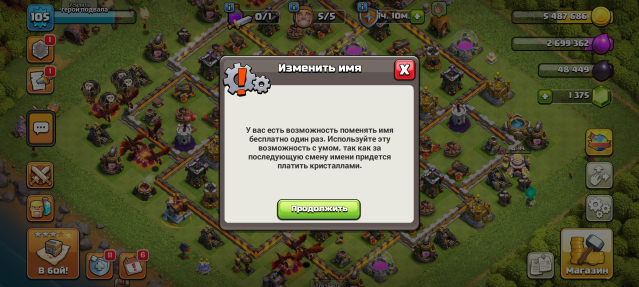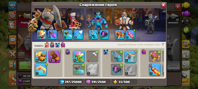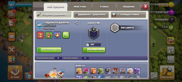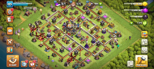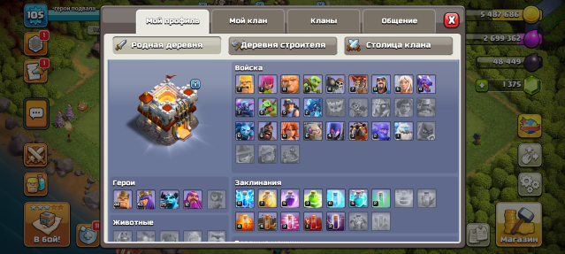 Уровень Ратуши: 11Краткое описание: ПЕРЕПРИВЯЗКА💎105LVL💎11 ТХ💎5РАБОВ💎5 СКИНОВ+ГИГАНТСКАЯ ПЕРЧАТКА💎ГЕРОИ 44/43/25/12💎1375ГЕМОВ💎СКРИНЫ💎