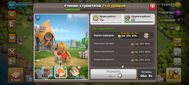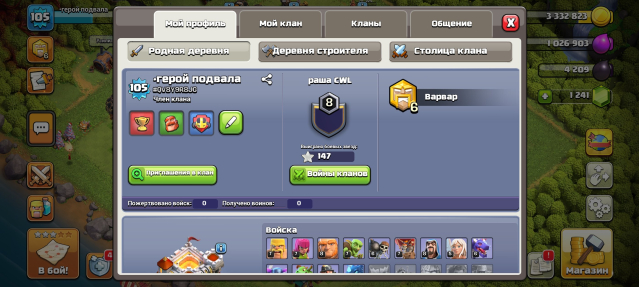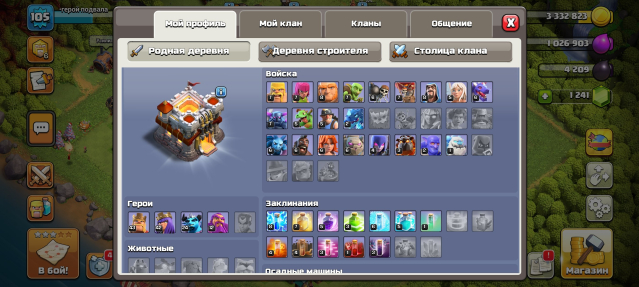 Уровень Ратуши: 11Краткое описание: Быстрая ВЫДАЧА💎105LVL💎11 ТХ💎5 РАБОВ💎5 СКИНОВ + ГИГАНТСКАЯ ПЕРЧАТКА💎ГЕРОИ 43/42/24/12💎1241 ГЕМ💎СКРИНЫ💎
