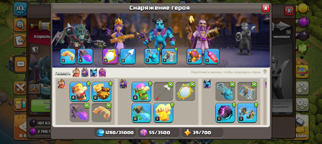 Уровень Ратуши: 13Краткое описание: Быстрая ВЫДАЧА💎113LVL💎13 ТХ💎5 РАБОВ💎ВОЛШЕБНОЕ ЗЕРКАЛО💎ГЕРОИ 50/50/24/20💎1529 ГЕМОВ💎СКРИНЫ💎