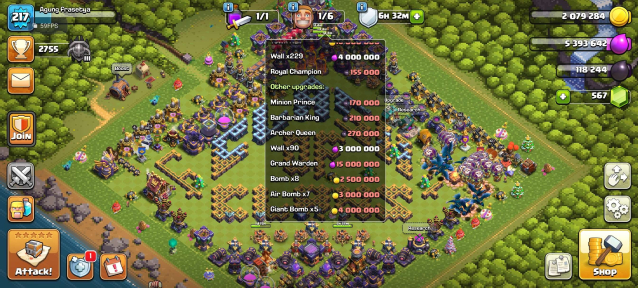 Уровень Ратуши: 15Краткое описание: 💎 TH15 💸 ПОЛУ-МАКС 💸 ВСЕ ЭПИКИ 💸 САМЫЙ ДЕШЁВЫЙ АККАУНТ 💎