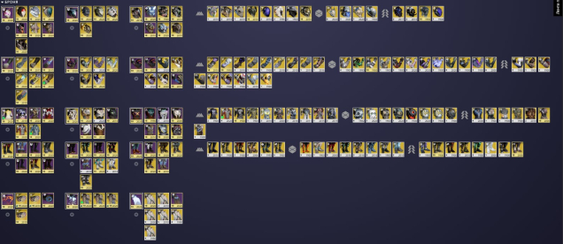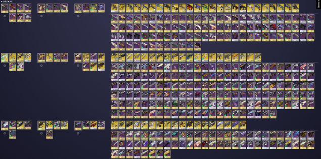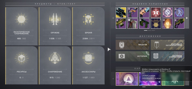⭐очень крутая коллекция оружия, все крафтовые образцы пушек возведённые в абсолют и ситуативное оружие в годролах, все экзоты, большинство украшений на экзоты 226/318, все катализаторы