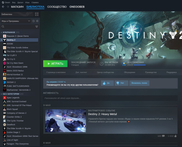 Платформа: PCКраткое описание: 🔰🔅⭐ Destiny 2 Продаю свой личный аккаунт Steam (родная почта), 15к часов ⭐🔅🔰