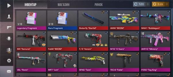 Подробное описание: Аккаунт с инвентарем примерно на 3к голды