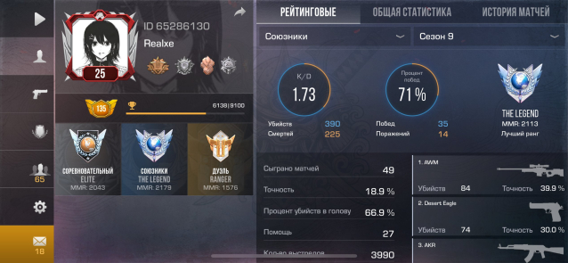 Звание: LegendКраткое описание: 💥🟥MEDAL «VETERAN 2020»🟥🥶1327+ Часов🥶🏅7 OLD Медалей🏅🛑СТАТРЕК РАМКА🛑 💛3 ЛЕГЕНДЫ💛🟣135 LVL🟣