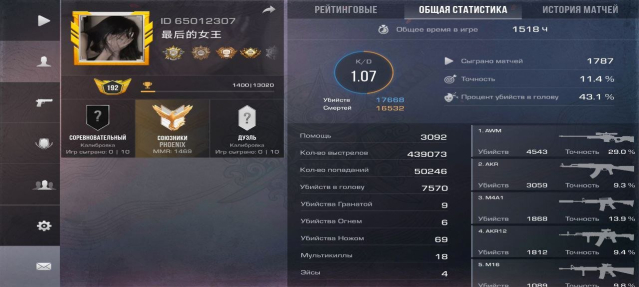 Акк 2020 года личный 192 лвл 1500+ часов есть все медали начиная с 21 до 25, Phoenix
