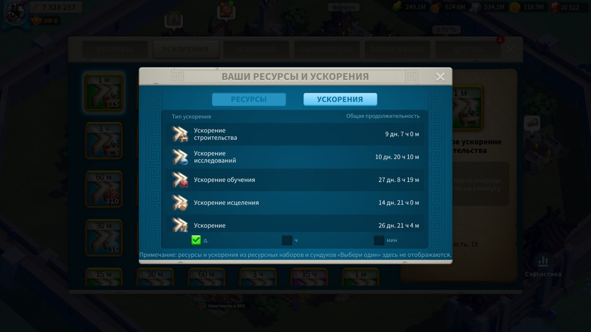 На одном из персонажей также есть тонна ускорений (на фото), поэтому если захотите — можете понулить свои войска под МГЕ, для легкой добычи КП.