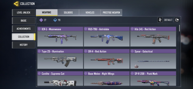 ◘ 🎯 Скины (на оружие): 17 эпических, 70 редких