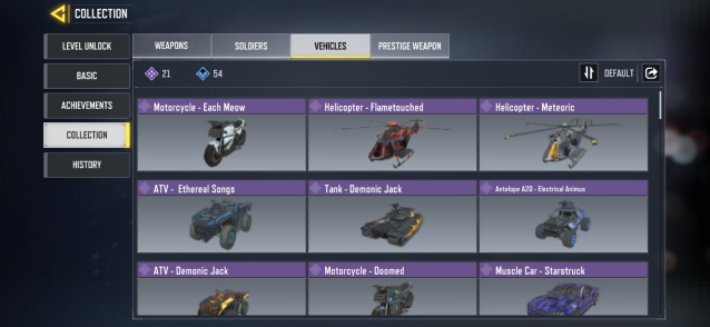 ◘ 🚗 Скины (на транспорт): 21 эпических, 54 редких