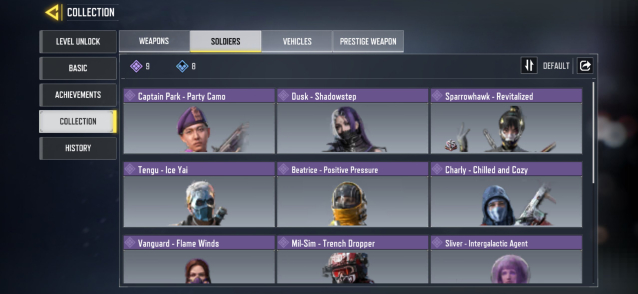 ◘ 🛡️ Скины (на персонажа): 6 эпических, 27 редких