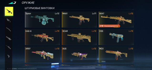 Почти все оружие до максимального уровня (70 лвл или 90 лвл)