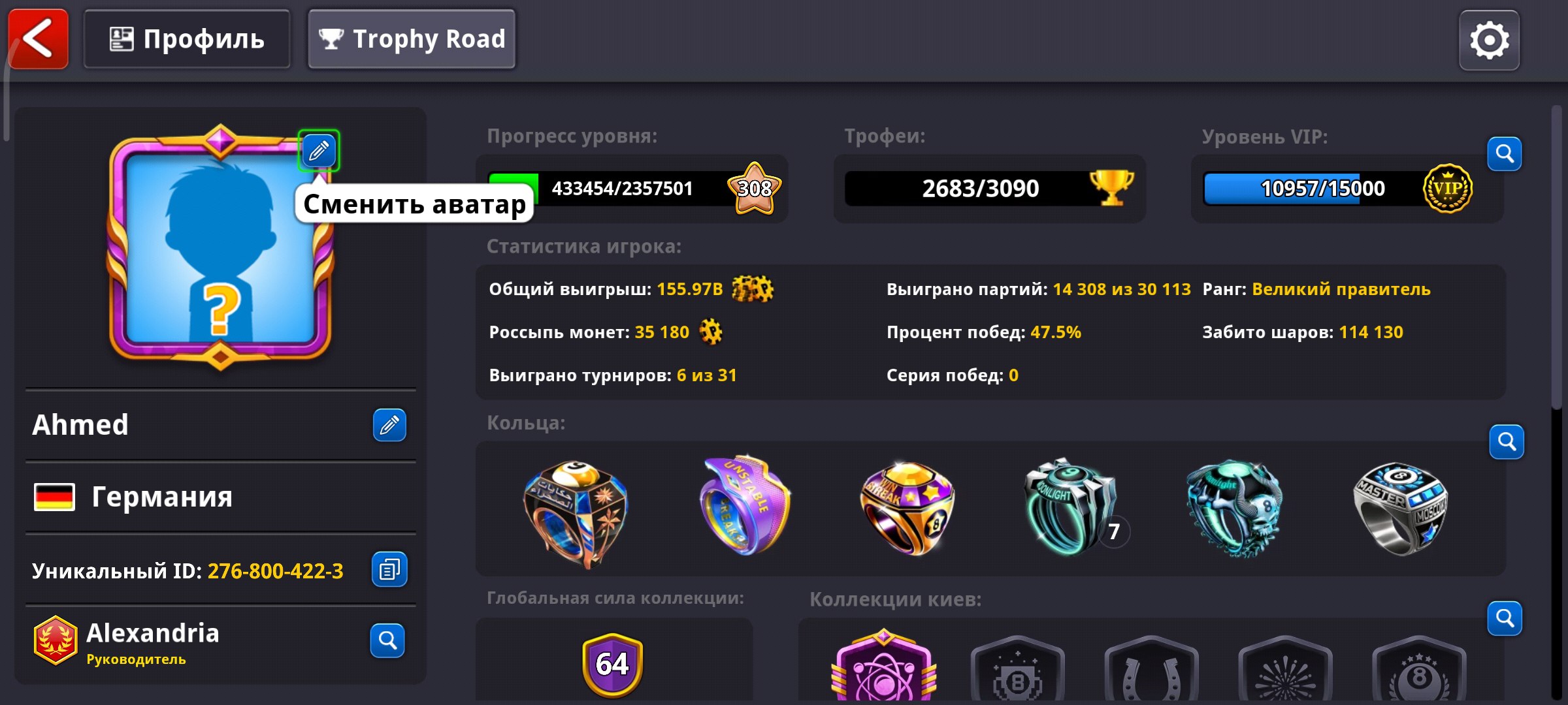 🎱Аккаунт 8 Ball Pool🎱308 LVL | 35 000 Монет | 1$ | 15 Легенд🎱