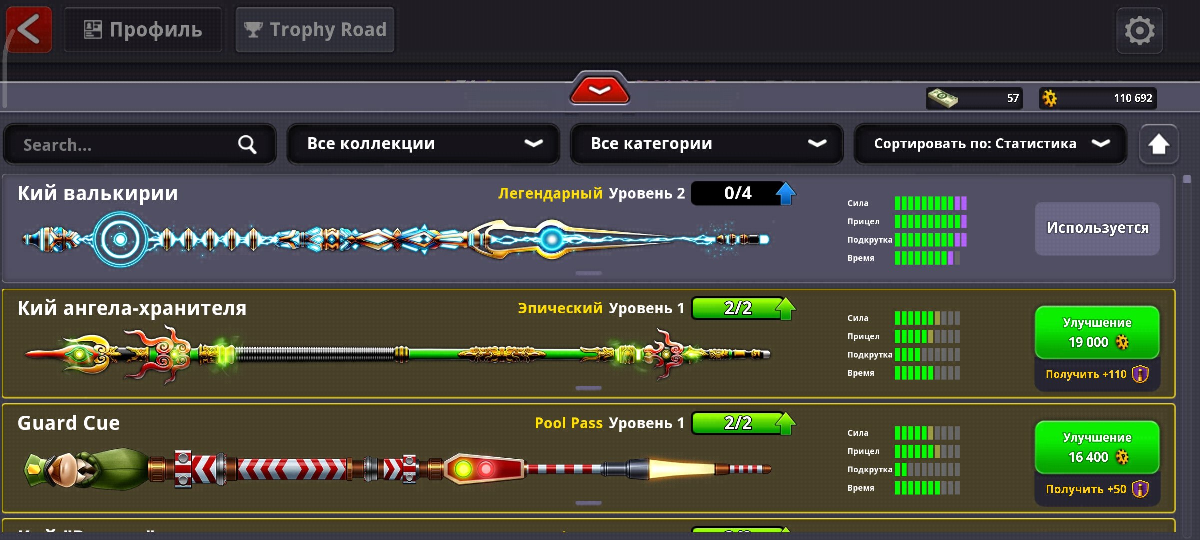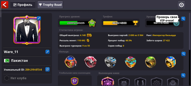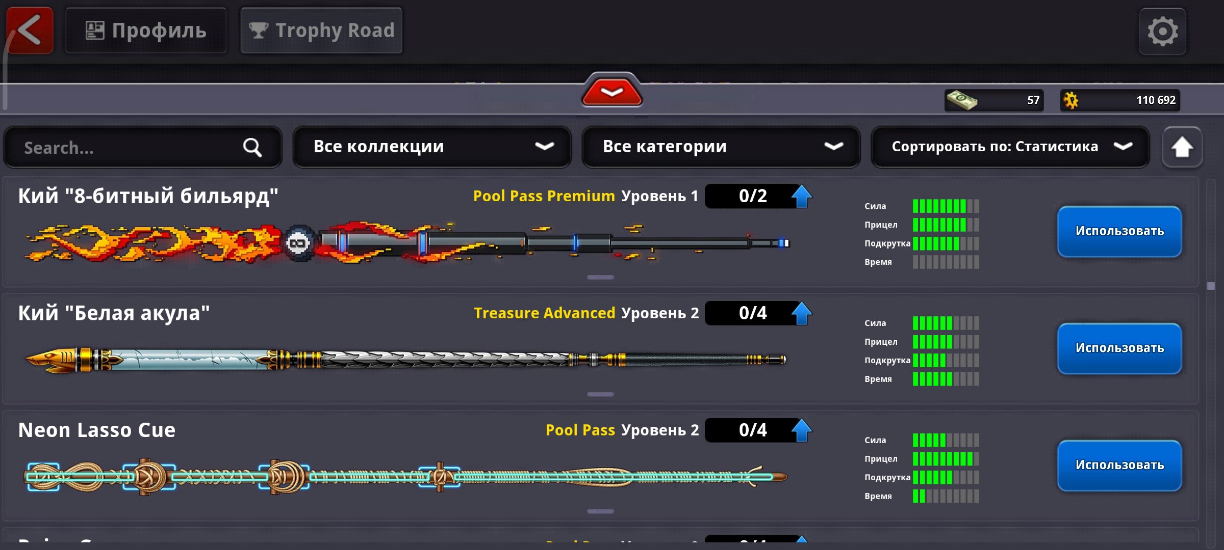 🎱Аккаунт 8 Ball Pool🎱154 LVL | 110 000 Монет | 57$ | 17 Легенд🎱
