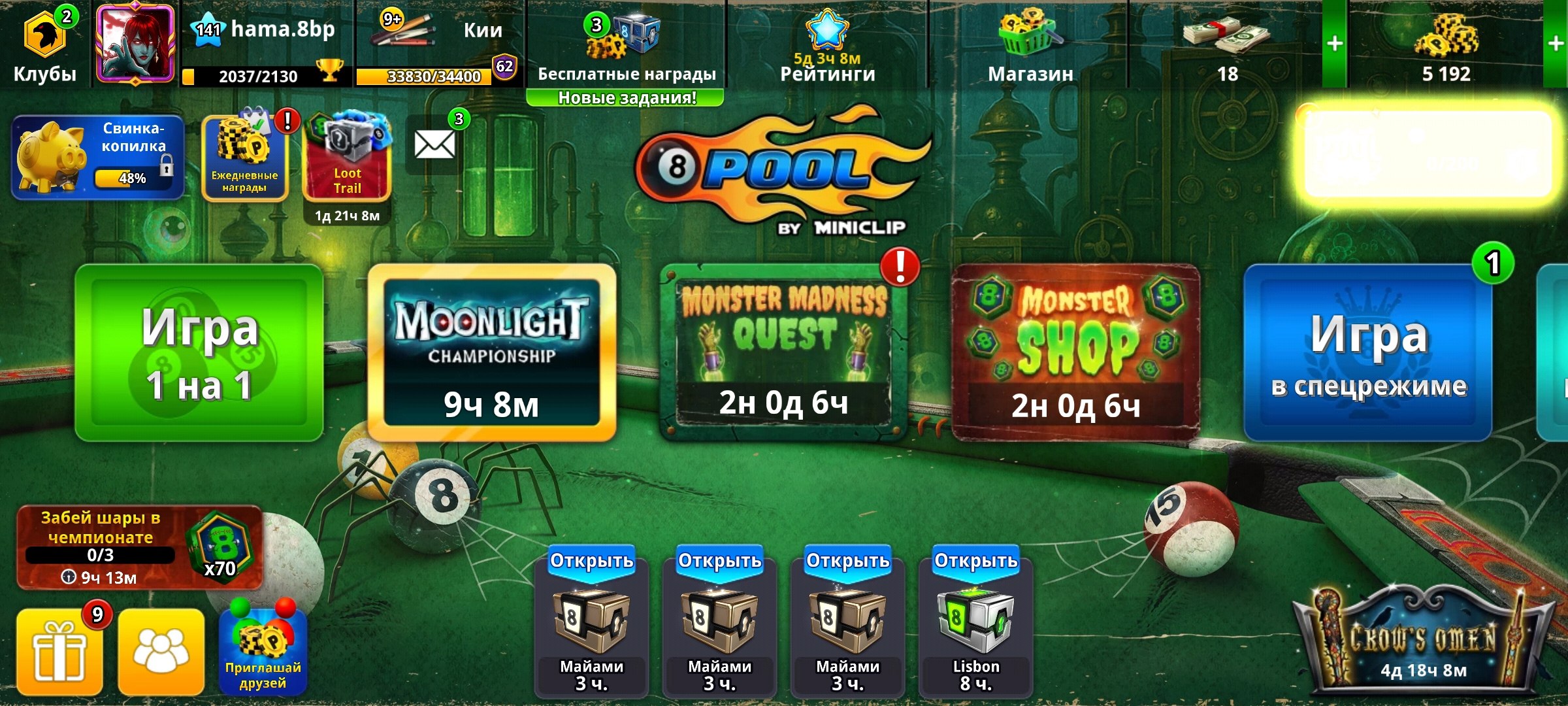 🎱Аккаунт 8 Ball Pool🎱141 LVL | 5 000 Монет | 18$ | 15 Легенд🎱