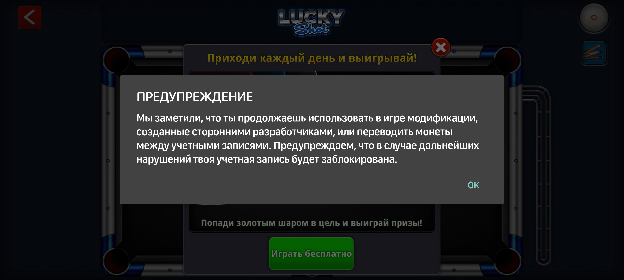 Есть предупреждение, которое не влияет на игровой процесс и не ограничивает его