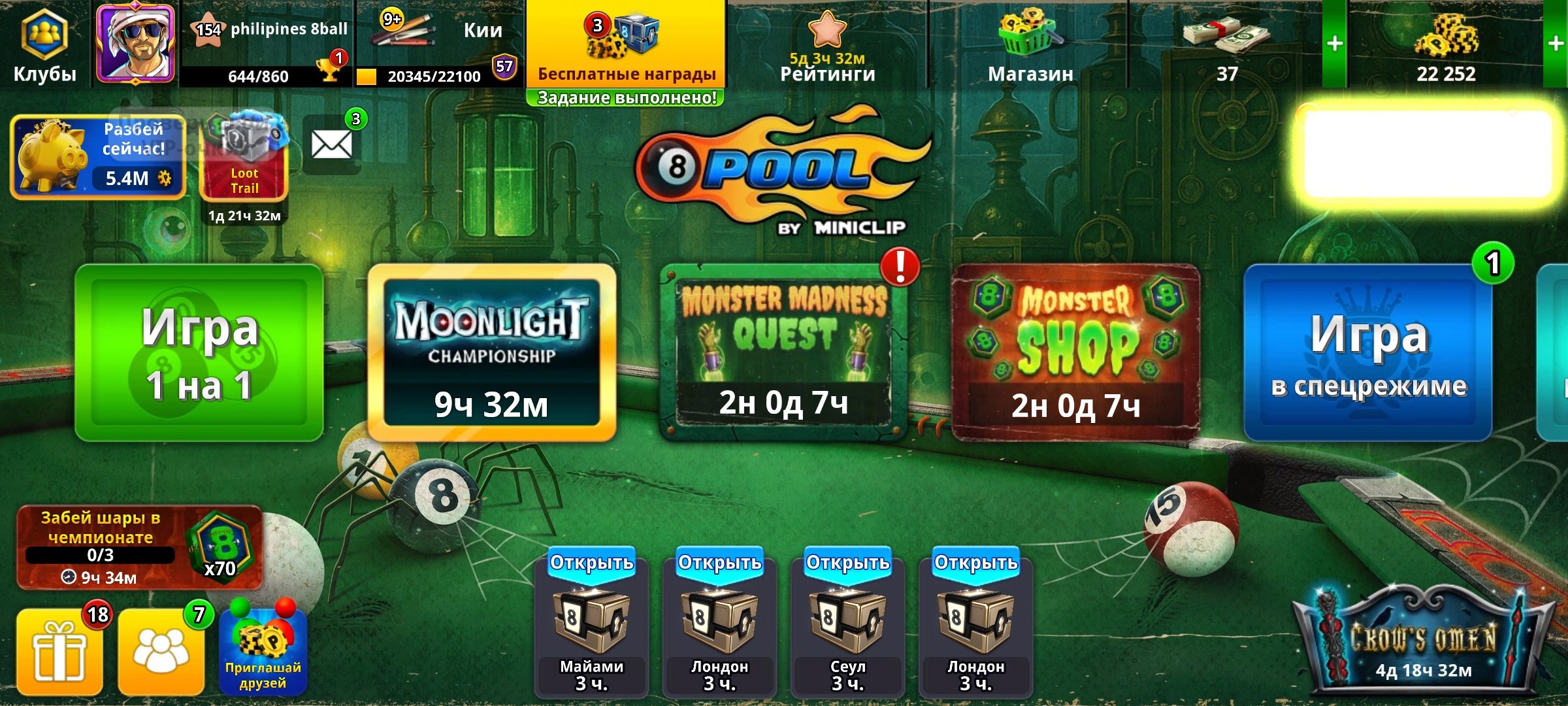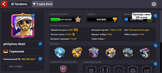 🎱Аккаунт 8 Ball Pool🎱154 LVL | 22 000 Монет | 37$ | 17 Легенд🎱