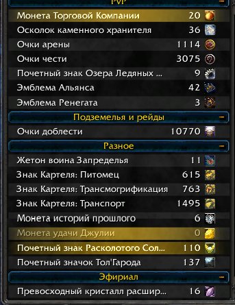 Если Вы видите у меня дублирование или похожие предложения, но с разными ценами — не беспокойтесь. Это означает, что один и тот же типовой товар (валюта, предметы, услуги) предлагают несколько разных игроков, которым он достаётся разными усилиями (кто-то фармит валюту/предметы вручную, кто-то владеет ботофермами и т.п. случаи).