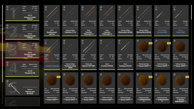 Подробное описание: 3 сборки на карпа Fortuna fd420 3 штуки катушки Syberia gold 60s 3 штуки много прикорма и 3к серы подробнее в лс!!! mellstroy.gay