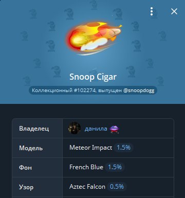 Краткое описание: 🚬Snoop Cigar🚬 💎МОДЕЛЬ: 1.5% 💥ФОН: 1.5% 🍀УЗОР: 0.5% ❗ПОДРОБНЕЕ НА КАРТИНКЕ❗ БЫСТРАЯ ОТПРАВКА🚀