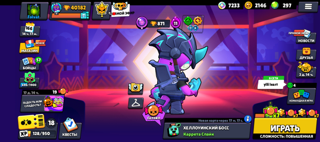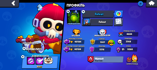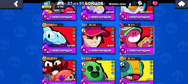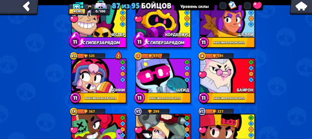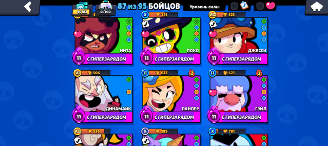 Играю с 2019, 40000 кубков, 297 гемов, почти все бойцы