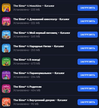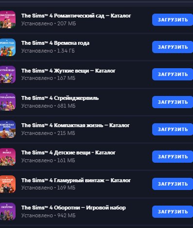 🔵 На аккаунте купленные дополнения: Романтический сад — каталог | Времена года | Жуткие вещи — каталог | Стрейнджервиль | Компактная жизнь — каталог | Детские вещи -каталог | Гламурный винтаж — каталог | Оборотни — игровой набор | Сдается | Конное ранчо | В ресторане | На работу! | Детская комната — каталог | На заднем дворе -каталог | Комнатные растения — комплект | Вечер боулинга — каталог | Кошки и собаки | Жизнь в городе | Классная кухня — каталог | Загородная жизнь | В университете | Фитнес — каталог | Жизнь на острове | День стирки — каталог | Роскошная вечеринка — каталог | | Moschino — комплект | Домашний кинотеатр — каталог | Мой первый питомец — каталог | Нарядные нитки — каталог | В поход! | Паранормальное — каталог | Родители | Внутренний дворик — каталог |