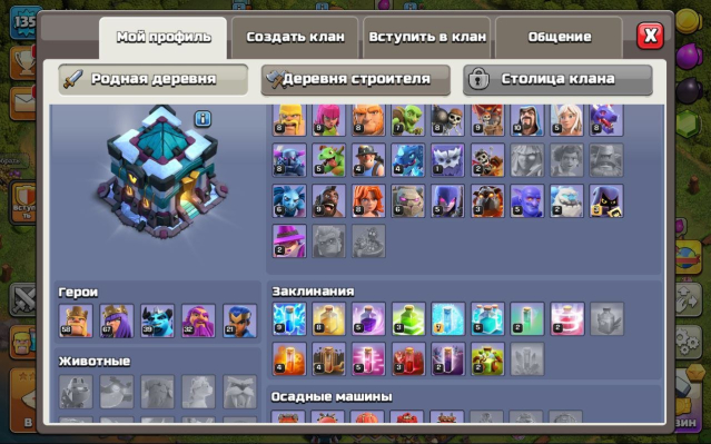 Уровень Ратуши: 13Краткое описание: 13 тх 75% от фулла, 58/67/39/32/21, вкачано снаряжение, 7 дс, описание 👇