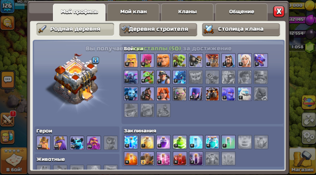 Уровень Ратуши: 11Краткое описание: 🟨【 Фулл тх 11 】⚡126 lvl⚡💎 1к + 800 лвк💎【ГЕРОИ — 50/50/28/20】⚡ ПОЛНЫЙ ДОСТУП ⚡ СКРИНЫ 🟨