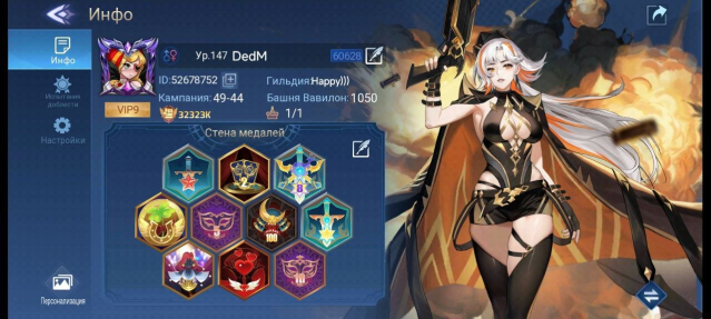 Краткое описание: lvl 147, вип 9, башня вавилона 1050, компания 49-44***