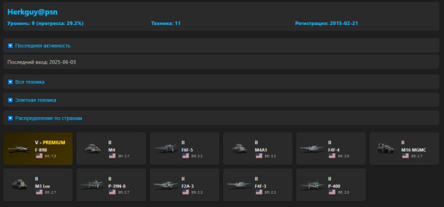 ДАННЫЕ ИДУТ ОТ АККАУНТА WAR THUNDER.COM