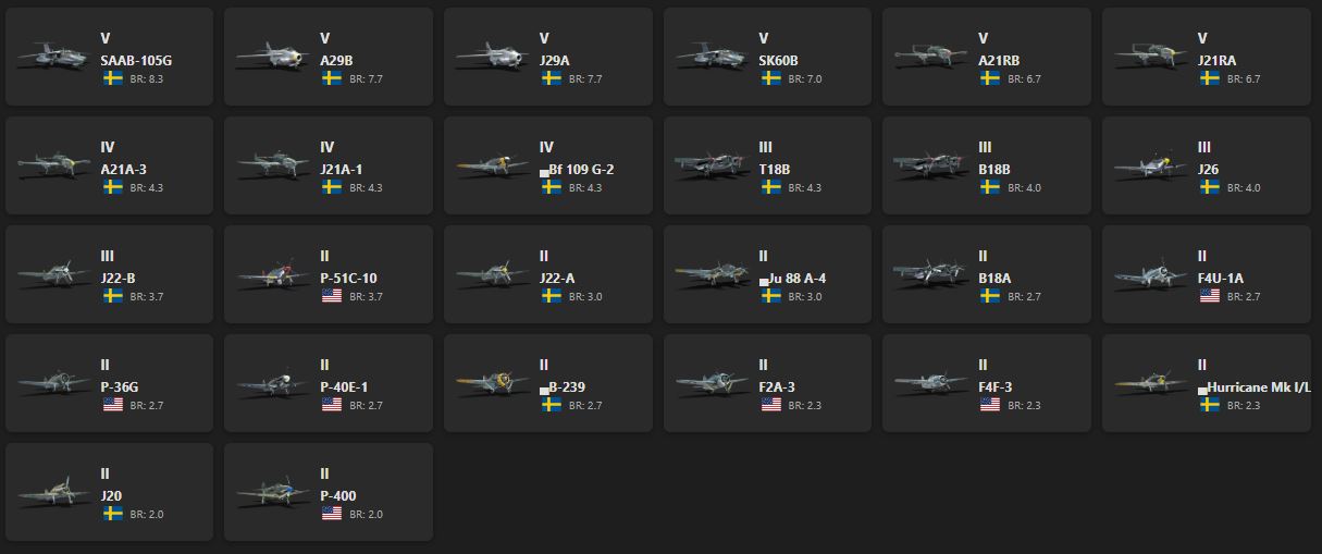 V - 6 SAAB-105G, A29B, J29A, SK60B, A21RB, J21RA, A21A-3, J21A-1, Bf 109 G-2, T18B