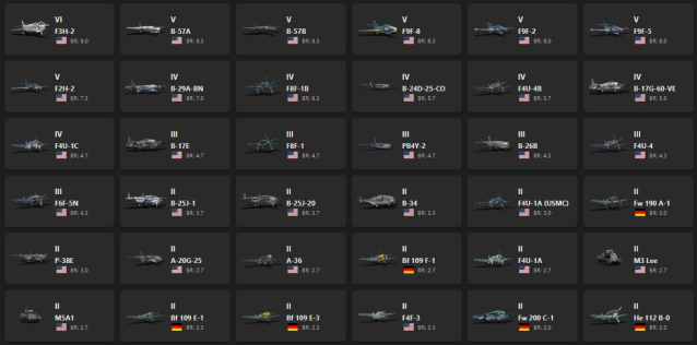 VI - 1, V - 6 F3H-2, B-57A, B-57B, F9F-8, F9F-2, F9F-5, F2H-2, B-29A-BN, F8F-1B, B-24D-25-CO