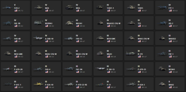 V - 1 F2H-2, M26, M56, T26E1-1, T26E5, F7F-1, F8F-1B, M109A1, M41A1, M4A3E2 (76) W