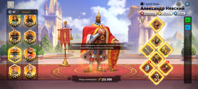 — Кавалерия: Хоу, Жанна П, Невский, Артур, Аттила, Такеда, Уильям, Сян Юй
