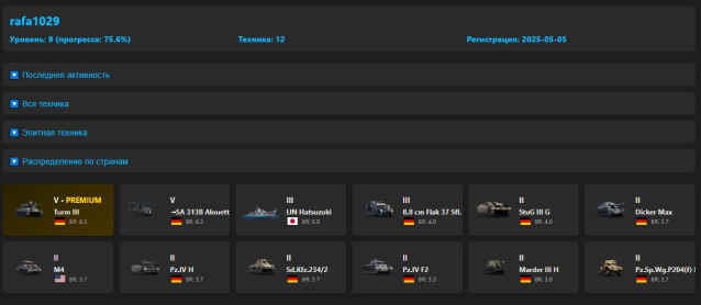 ДАННЫЕ ИДУТ ОТ АККАУНТА WAR THUNDER.COM
