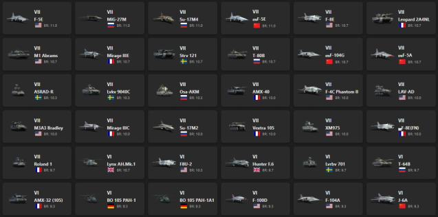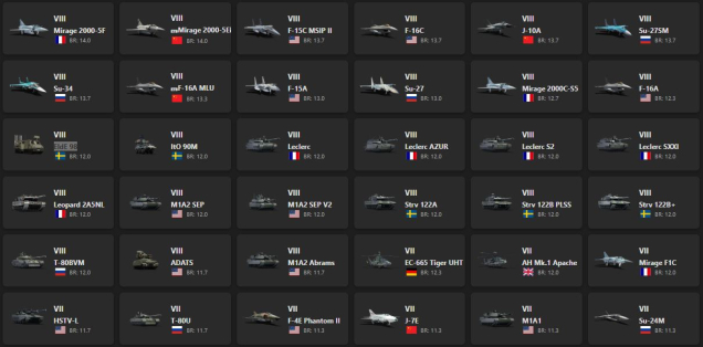 VIII - 32, VII - 55, VI - 57, V - 78 EldE 98, Rafale C F3, Mirage 2000-5Ei, F-15C MSIP II, Su-27SM