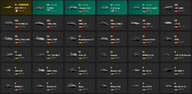 VIII - 4, VII - 6, VI - 11 T-80UK, Hunter F.58, A-4E Early, EF-2000, F-4F KWS LV, MiG-29G, MiG-29