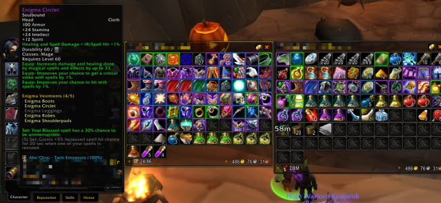 Подробное описание: Готовый к наксу маг 4/5 -T 2.5 + 6-T1+ 6-T2-+ 4/5 Zandalar set, Bloodvine set 3/3 / топ тринькеты.Mind Quickening Gem