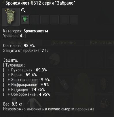 Сервер: RU2 — SPBКраткое описание: Бронежилет 6б12