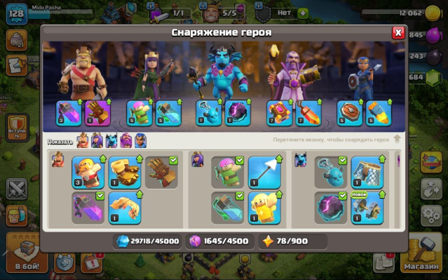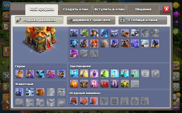Уровень Ратуши: 16Краткое описание: 16 тх раш, 38/40/41/20/18, 10 дс, 1.6 к гемов, вкачано снаряжение, описание 👇
